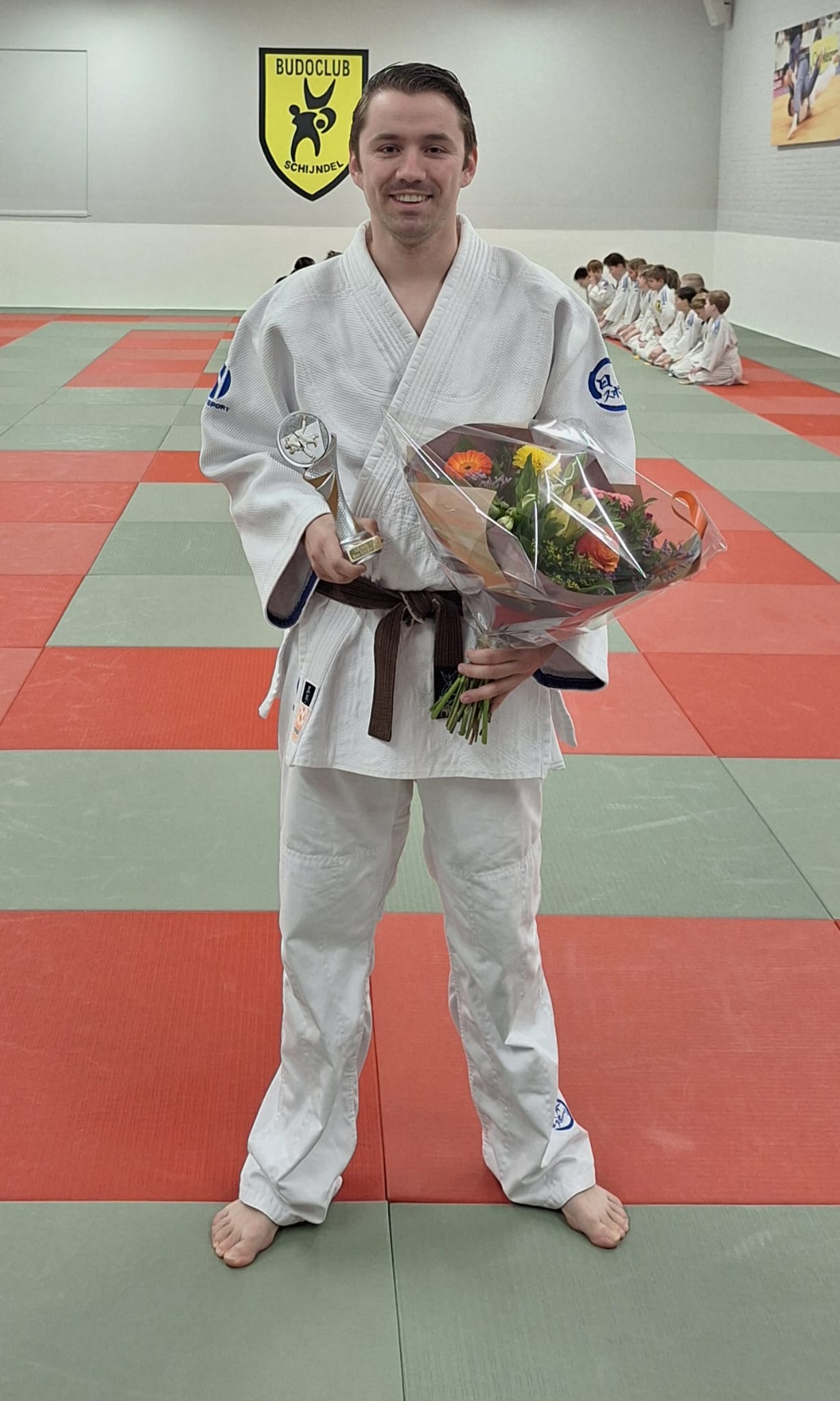 Zaterdag 7 maart is trainer Rik van de Greef in het zonnetje gezet voor zijn 25-jarig jubileum bij onze vereniging. In het bijzijn van de judoka’s van groep 2 en 3, overige trainers en assistenten, vele ouders en familieleden kreeg hij na een mooi woordje van voorzitster Yvonne een bos bloemen en jubileum standaardje.