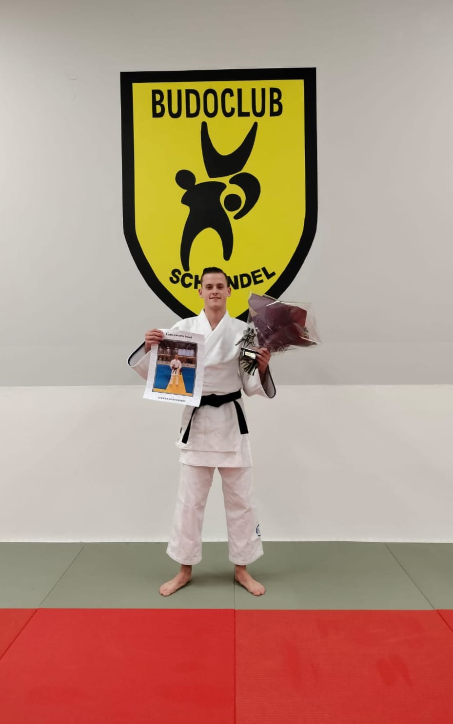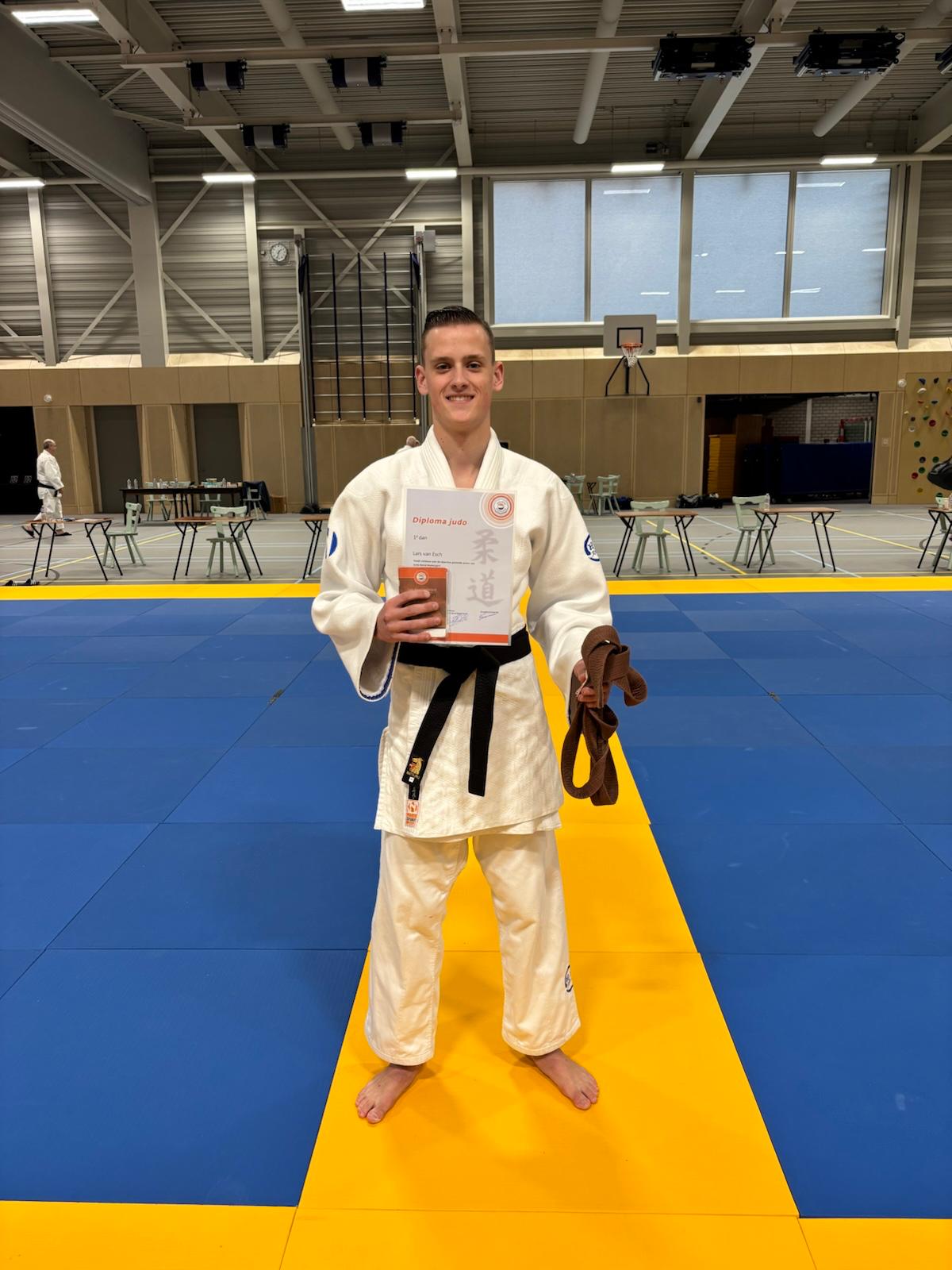 Maandag 30 maart werd Lars van Esch in de dojo gehuldigd voor het behalen van de 1e dan/zwarte band en het mooie examen wat hij liet zien aan de dangradencommissie in Gilze.