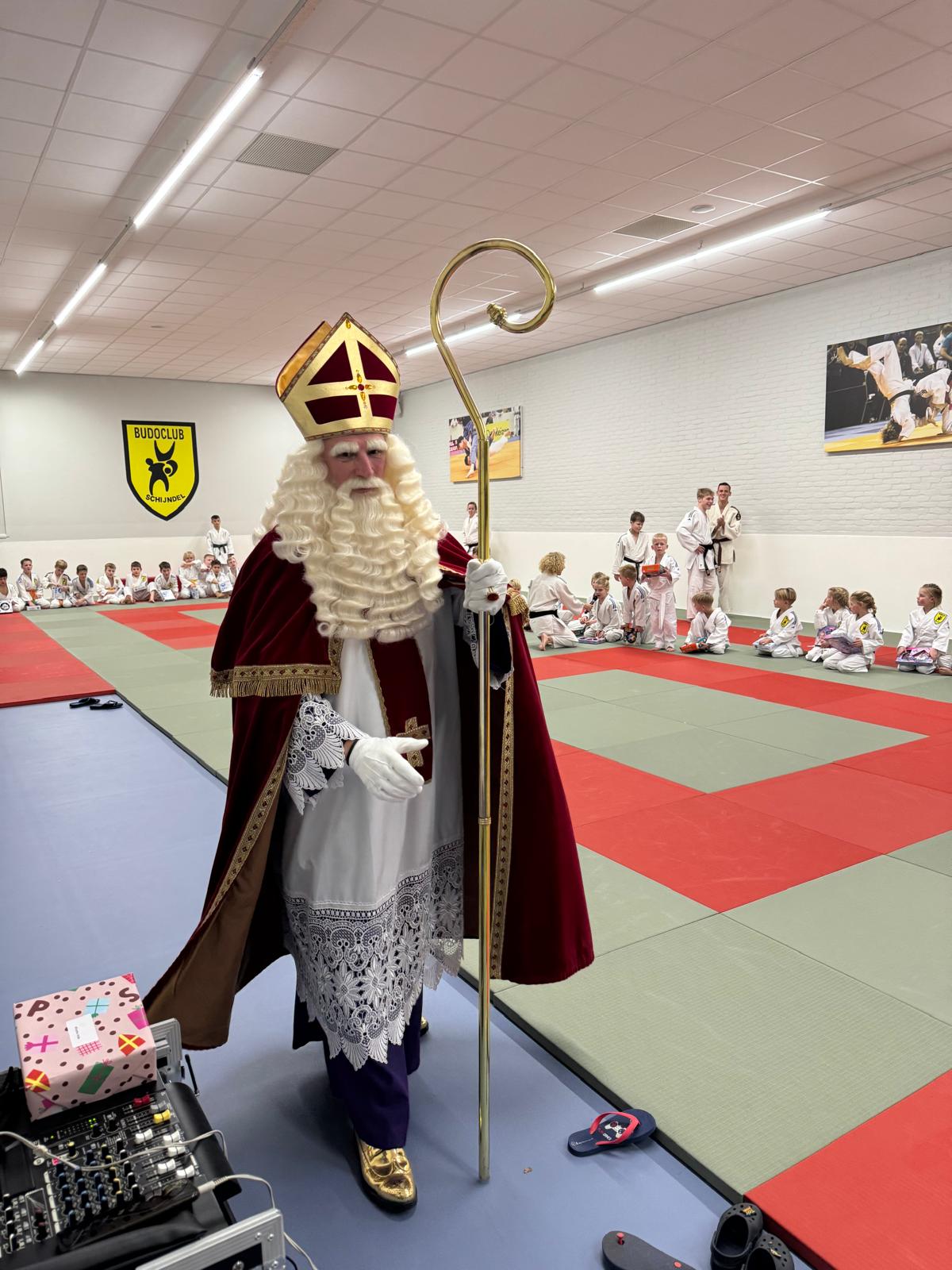 Dinsdagavond 25 november kwamen Sinterklaas, fluitpiet en een hulppietje op visite in de dojo voor de judogroepen 1-2-3. Alle groepen hebben aan de sint mooie judo oefeningen laten zien. Fluitpiet kreeg ook zin om mee te doen en had een judopak aan getrokken. Dit zorgde voor hilarische momenten. De zakken met cadeaus waren na enig zoekwerk gelukkig ook gevonden. De kinderen mochten een voor een naar voren komen om het cadeau op te halen. Er was een grote opkomst van ouders, opa’s, oma’s, broertjes en zusjes. Fluitpiet zorgde er nog voor dat de hele tribune, alle judoka’s en trainers aan het dansen waren! Fantastisch om te zien. Wat een enthousiasme en blije snoetjes!